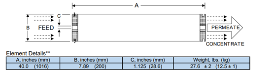 LFC3-LD膜元件在使用過程中,進水應(yīng)滿足其進水條件,比如進水溫度應(yīng)該在5-40℃之間、pH值在2-10之間。防止進水無法達到要求對膜元件造成傷害。